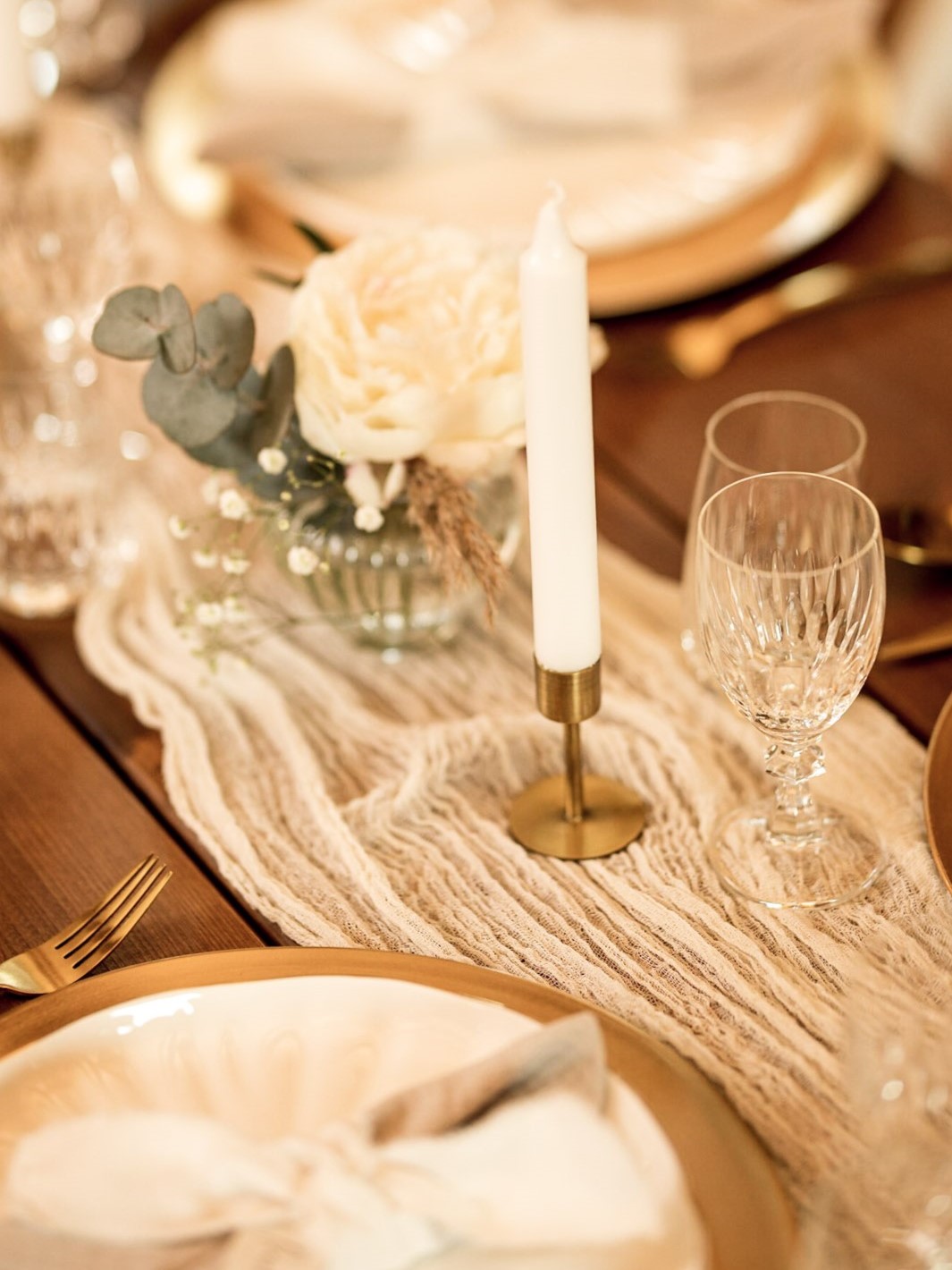 Goldener Kerzenhalter in Mattoptik für Stabkerzen.